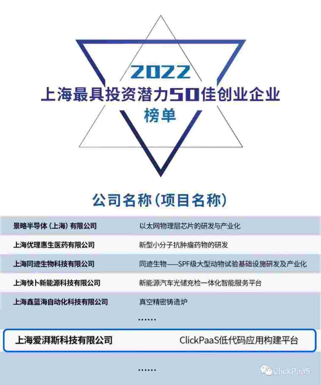 CGPAY钱包 作为国内低代码PaaS平台的领军企业,,,与120家创企入围角逐。。期间接受了来自德同资本、、领中资本等知名投资机构的10位投资人组成专家评委团的背靠背盲选。。并最终入围“2022上海最具投资潜力50佳创业企业”榜单,,,被列入“上海市重点培育创业企业库”。。。
